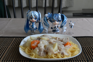 お昼はクリームシチューパスタ