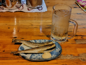 夜は今日も「みち子」さんで飲みました。地元の漁師さんや若者とお話ししながらとても良い酔い心地でした。