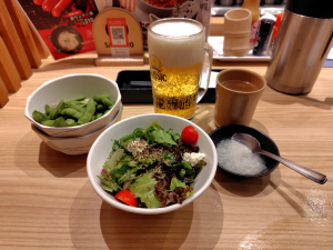 グリーンサラダハーフ、枝豆など
