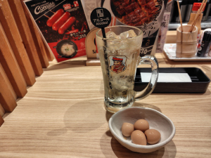 ハイボール、どんぐり(味付うずらのたまご)
