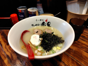 〆はいつものように「らーめん✩サッポロ赤星」さんで“塩らーめん”。600円ですがとてもクオリティが高く、また味変のサバにんにく粉でさらに美味しいです。