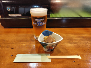 生ビール、お通し