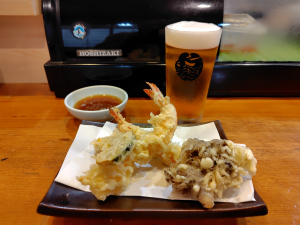 天ぷら盛り合わせ、生ビール