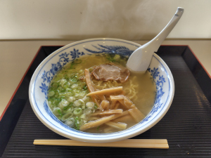 利尻は新雪が積っていますが、八合目ぐらいまで雲の中。とても寒いです。暫し利尻を眺め、湿原センターまで戻り、レストハウスサロベツさんで“塩ラーメン”と“いももち”。