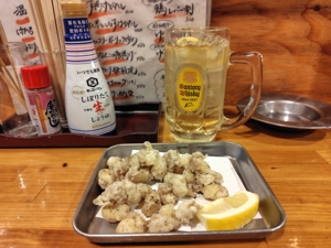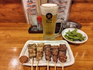 やきとん5本盛り塩、生ビール、味付け枝豆