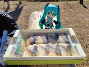 小田原駅で買った駅弁「鰺の押し寿司」でお昼。