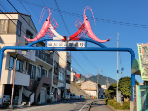 由比駅に到、駅前の「桜えび通り」