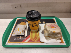 朝食は「マクドナルド相模大野駅北口店」さんで“朝マック ソーセージエッグマフィンセット(プレミアムローストコーヒーM)”です。