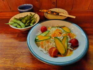 野菜サラダ、枝豆