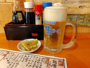 生ビール、お通し