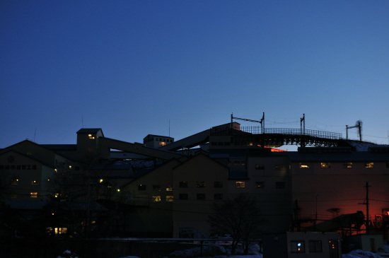 まだ日本の石炭は生きているという事を伝えているかの如く、構内から明りがもれています。