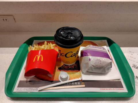 コロッケたまご 285円(税込み)、チキンコールスロー295円(税込み)、アイスコーヒー(サイズアップ)335円(税込み)